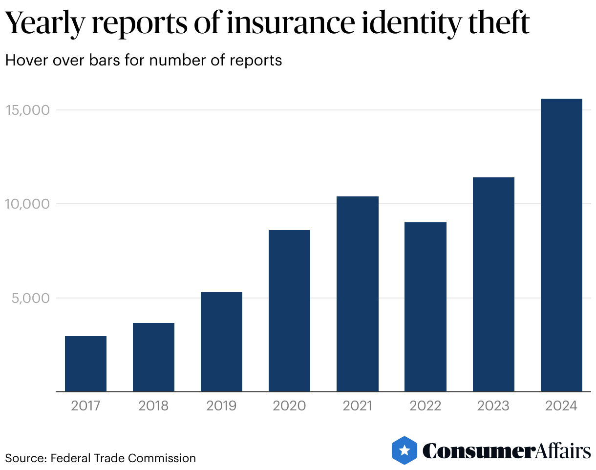There were 15,587 reports of insurance identity theft in 2024, marking a 37%jump from 2023 and the most reports on record, according to a yearly report from the Federal Trade Commission.