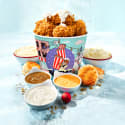 For $25, you get an 8-piece bucket of Extra Crispy fried chicken, biscuits, two large sides of mashed potatoes and three sides of 8-oz. gravy (signature brown gravy, white peppercorn gravy, queso gravy). Buy Now at KFC