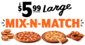 Until November 23, pick two or more select items for $5.99 each with promo code "MIXNMATCH" online or via the app. The items include large pizzas, wings, and pretzel crust pizza.