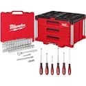 As part of today's daily deals, shop this discounted selection. We've pictured this Milwaukee 3/8" Drive SAE/Metric Mechanics Tool Set (62-Piece) w/ PACKOUT 3-Drawer Tool Box for $279 ($98 off.) Shop Now at Home Depot