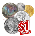 Here on eBay Live, you'll find lots of sellers offering big discounts on gold and silver coins and bullion. Deals start at just a buck, and many are already live (more will go live tonight, and then again tomorrow). You will need an eBay account to participate, which is free to set up. Buy Now at eBay