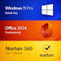 DigitalKeysBox offers the Security Bundle: Microsoft Windows 11 Pro + Office Pro 2024 + Norton 360 on sale for $19.99 (reduced from $39.99) via promo code "SAFEAPRIL20" applied in-cart.