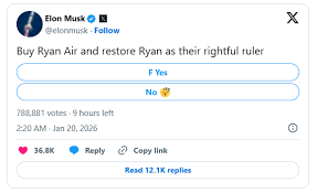 "Rich Idiots" Strike Back! Musk Initiates Poll Threatening to Acquire Ryanair (RYAAY.US) and Fire CEOSource: 富途牛牛
