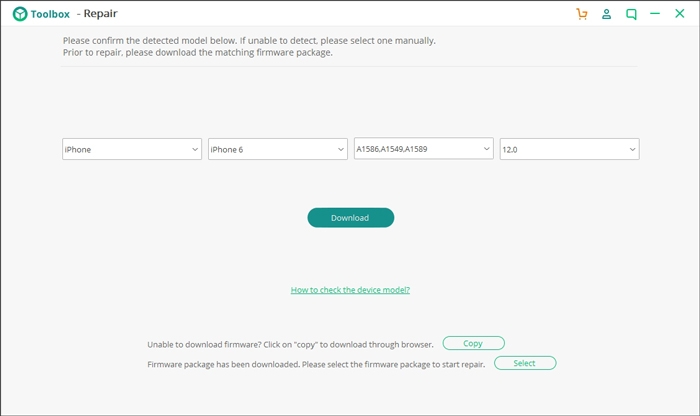 Step-by-step guide to fix iPhone black screen via iSkySoft Toolbox - Repair (iOS)
